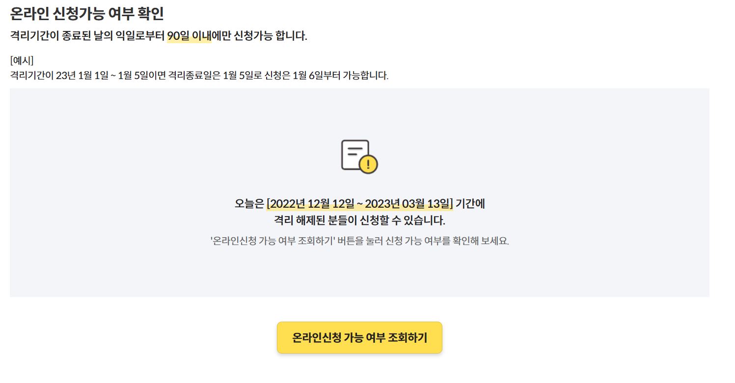 격리 종료 다음날부터 90일 이내에 신청하면 되는데,