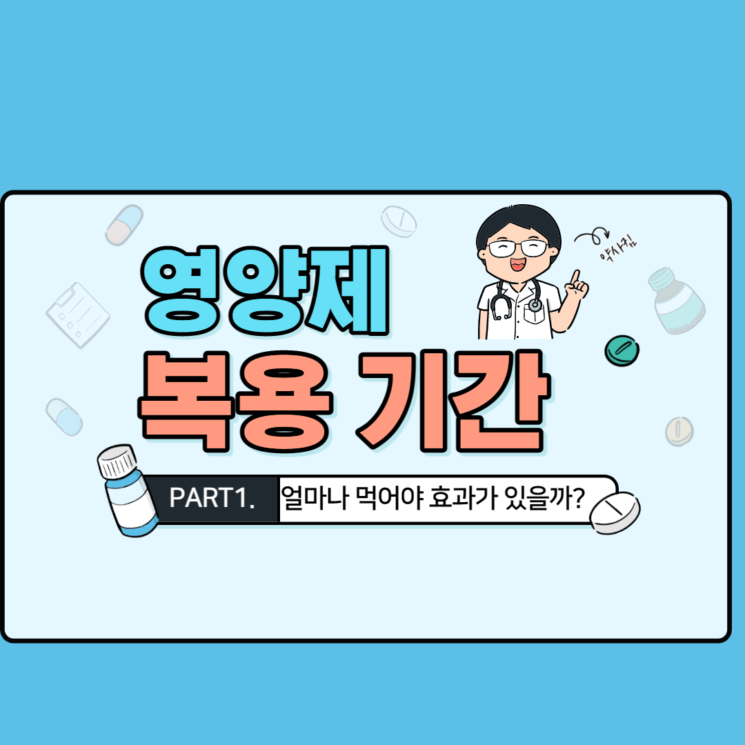 이 내용은 약의 복용 기간과 같은 절대적 기준은 아니며 설명한 기간만큼 영양제를 먹었지만 특별한 변화가 없다면 전문가와 상담하거나 다른 건강 개선 방법을 고민할 필요가 있다.